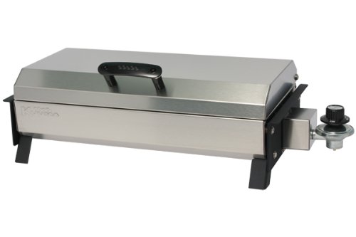 This outdoor grill is constructed of stainless steel, boasting 9000 BTU heat output and 150-square in cooking surface. It also features integral foldaway legs, stay cool handle and a removable grease tray. In addition, the grill has been treated with a specially formulated bath that ensure the outside stainless will not discolor if easy to follow instructions are followed. Ideal for boating, camping, RVing, or your patio.