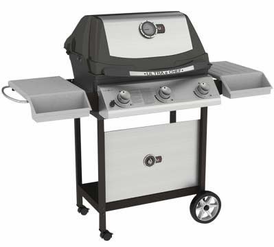 U405P-3 Fuel: Propane Features: -Stainless steel cooking grids.-Stainless steel sear plates.-Folding side shelves with condiment trays and side bar.-Cast aluminum lid.-Stainless steel temperature gauge.-Electronic ignition.-Stainless steel tubular burners.-570 square inch total cooking area.-Burner setup allows for direct and indirect grilling. Specifications: -Total BTUs: 45,000 BTUs.-Main tube burner: 45,000 BTUs. Warranty: -Limited lifetime warranty.